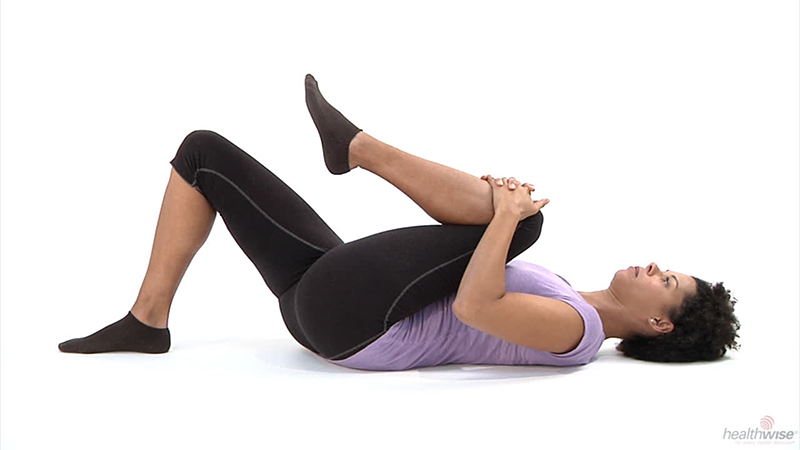 • Cruza una pierna sobre la otra y lleva suavemente hacia el pecho.