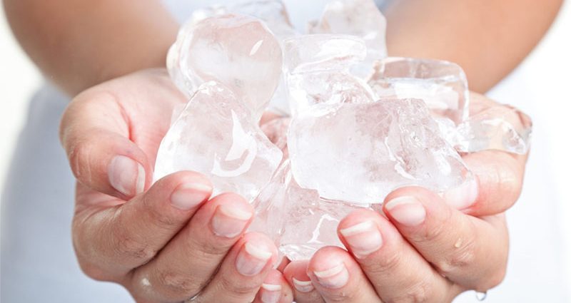 • Toma un cubo de hielo con la mano.